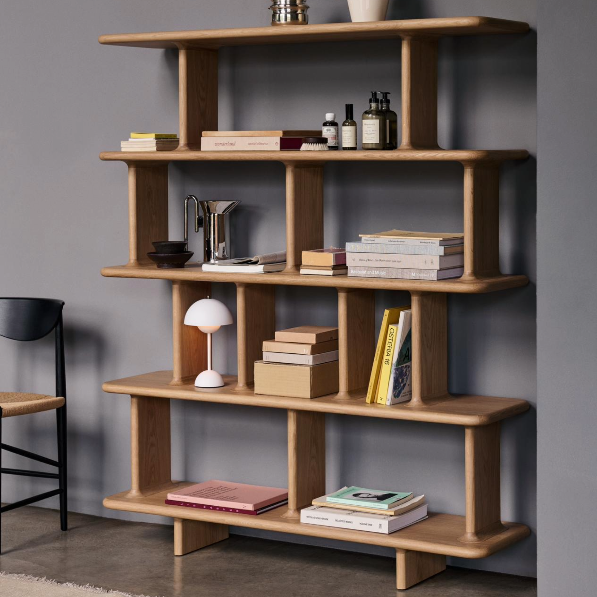 La bibliothèque Archivo JH45, imaginée par le designer espagnol Jaime Hayon pour la maison danoise &Tradition, est bien plus qu’un simple meuble de rangement : c’est une pièce sculpturale qui dialogue avec l’espace. Inspirée d’une étagère qu’il avait créée pour son propre intérieur, cette bibliothèque se distingue par sa structure irrégulière, faite de compartiments de tailles et de formes différentes. Ce jeu d’asymétrie lui confère une présence dynamique et singulière, tout en permettant de mettre en valeur aussi bien des livres que des objets décoratifs, souvenirs ou œuvres d’art.