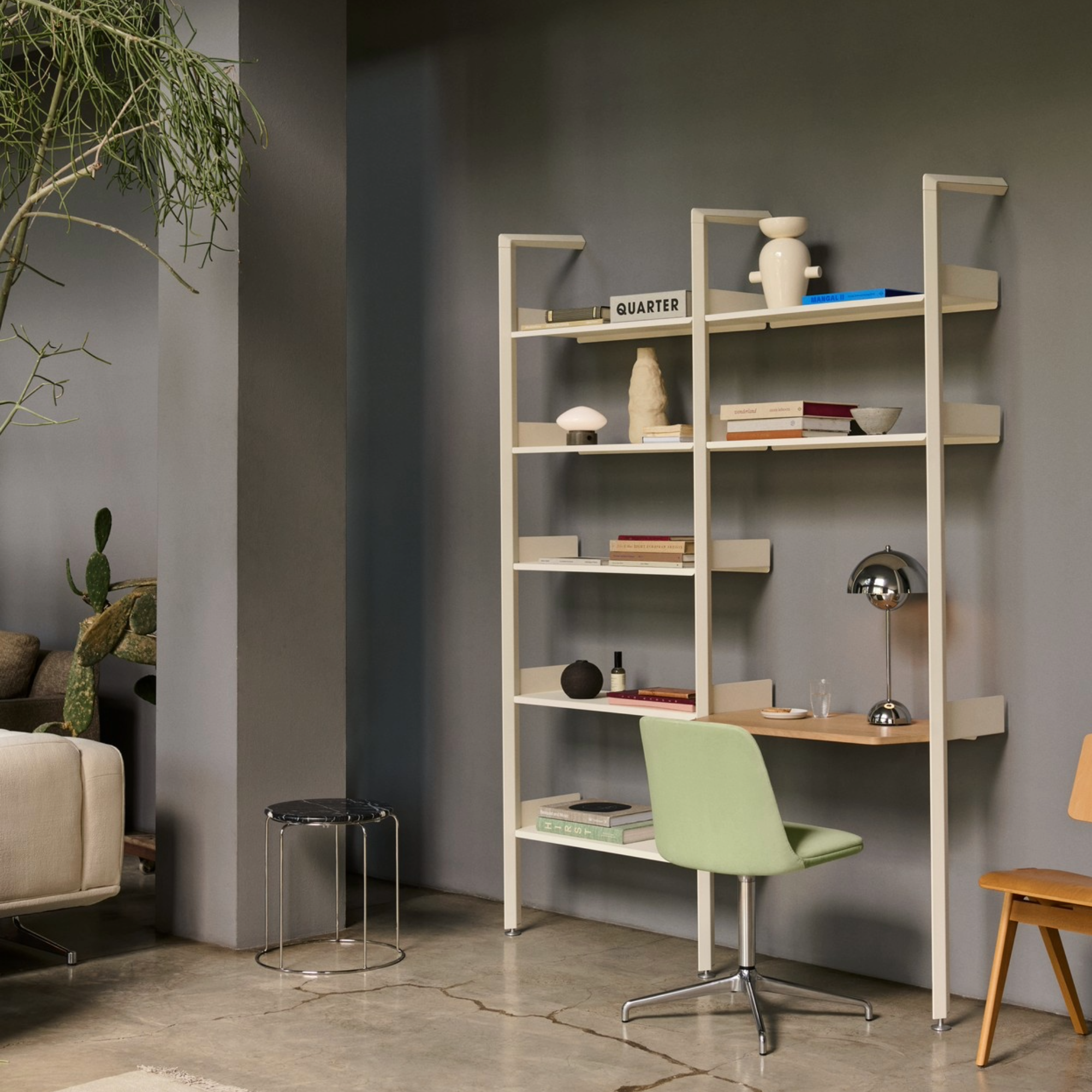 Le module Rombe IF5 propose un système d’étagères modulaires qui associe fonctionnalité et esthétique contemporaine. Sa structure en aluminium, légère et robuste, accueille des étagères ajustables. Elle offre une grande liberté d’aménagement, dans un cadre domestique comme professionnel. Élégante et raffinée, la bibliothèque évolue avec les besoins : elle devient tour à tour bibliothèque, rangement décoratif ou cloison visuelle.