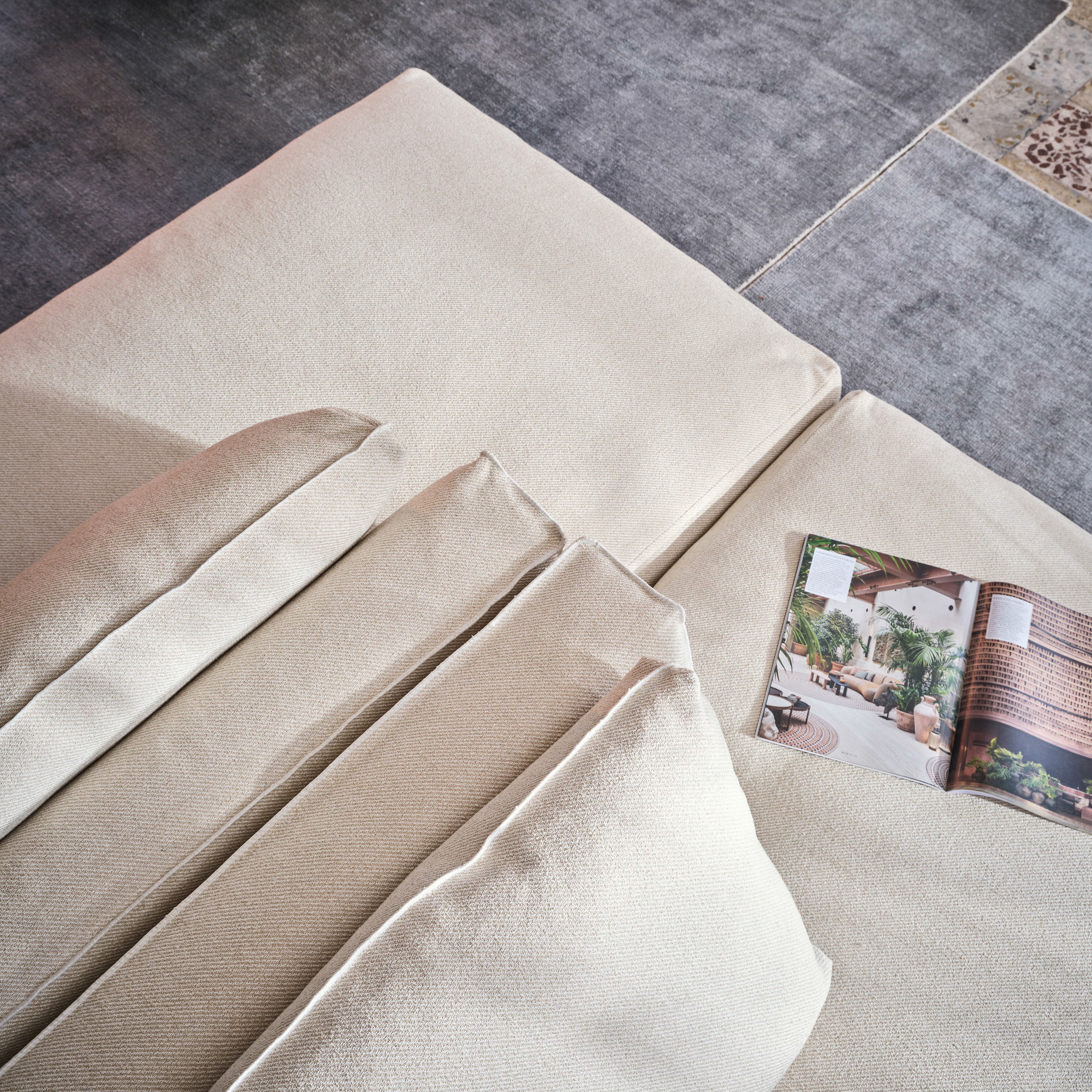 L’assise et le dossier sont composés de larges coussins garnis d’une couche moelleuse de duvet d’oie cloisonné. Pour l’assise, la technique traditionnelle des ressorts ensachés a été remise à l’honneur, garantissant un confort supérieur. Enfin, dans toutes ses versions, la collection Loll est entièrement déhoussable, ce qui facilite l’entretien et accentue sa polyvalence.