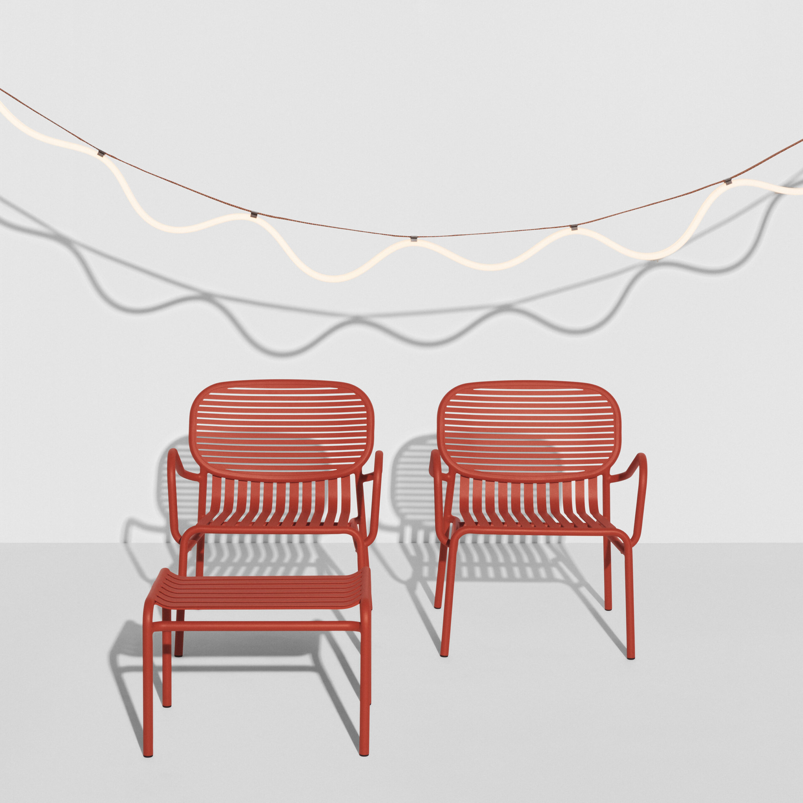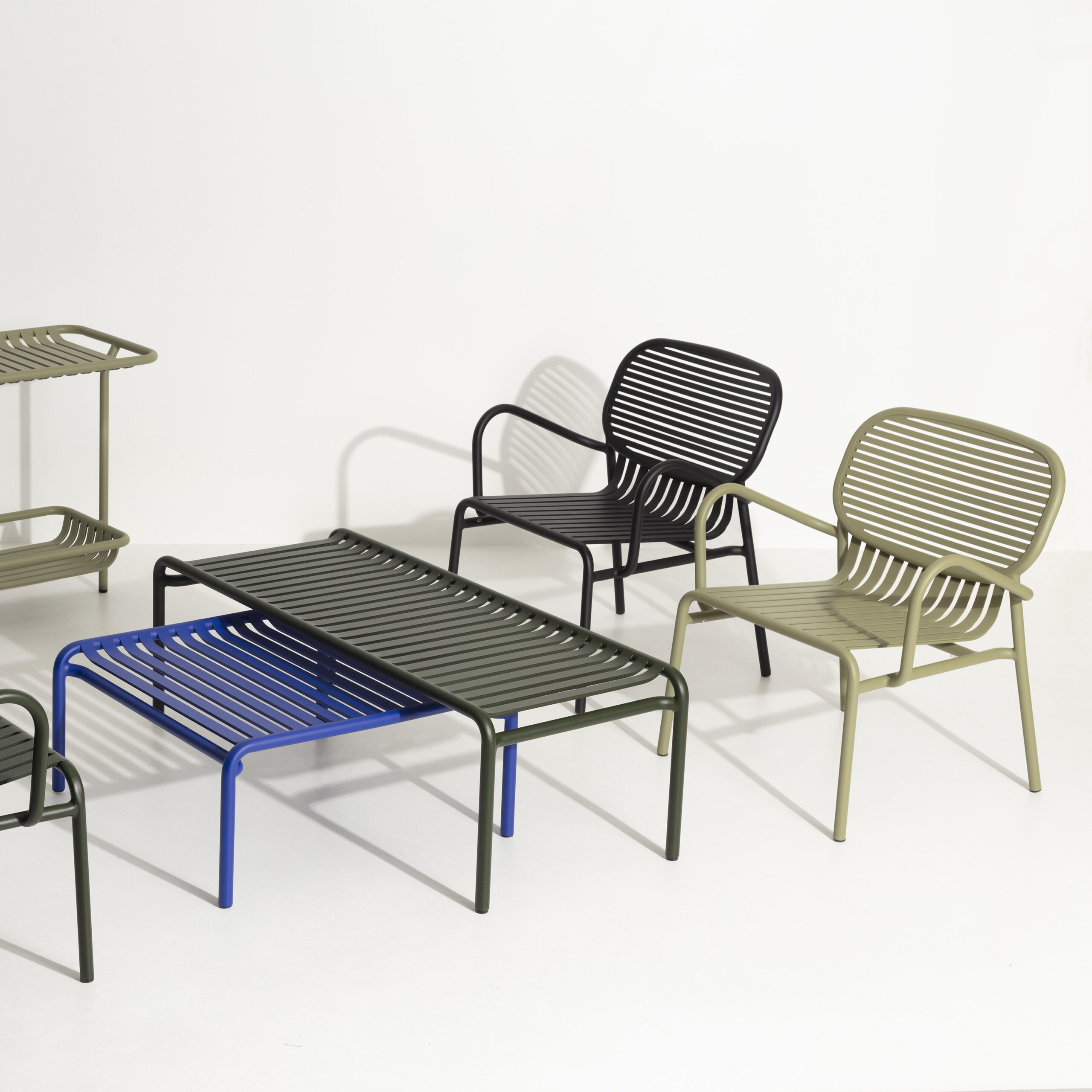 La collection Week-End, imaginée par Studio Brichet-Ziegler pour Petite Friture, propose une vision graphique du mobilier d’extérieur. Elle rassemble chaises, fauteuils, bancs, canapés et tables dans une même écriture formelle.