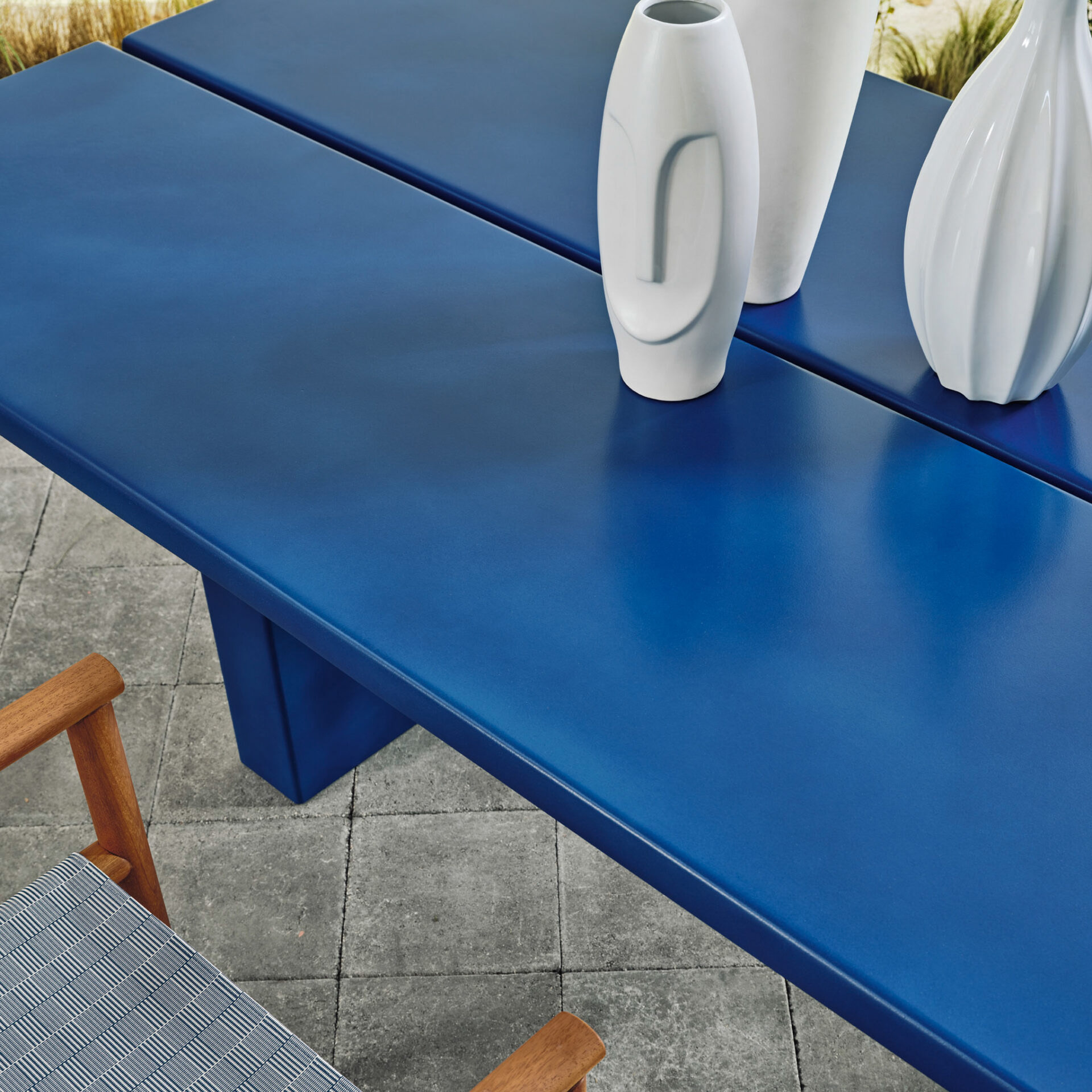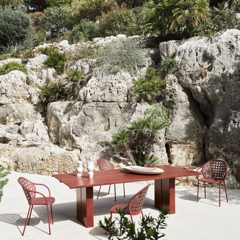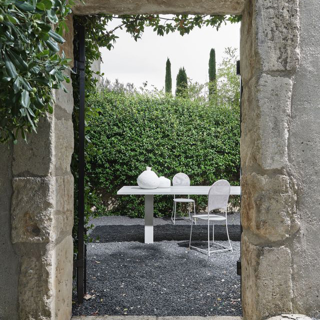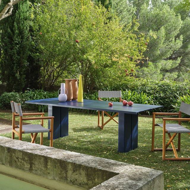 La table à manger Eidos 34 de Gervasoni, dessinée par Gabriele Buratti et Oscar Buratti, s’inscrit dans une approche contemporaine du mobilier. Sa structure est réalisée en teck naturel issu de plantations en Indonésie. Ce bois non traité résiste aux intempéries et évolue avec le temps.
