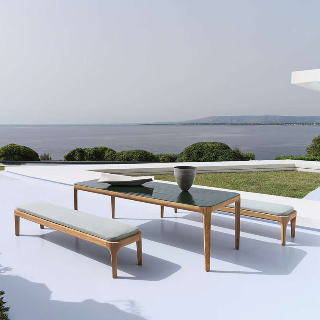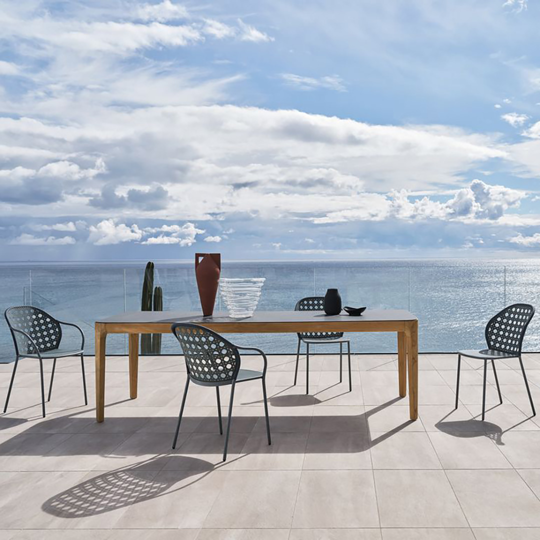 Avec la collection Mediterraneo, le designer propose une lecture fluide et structurée du mobilier de repas. Les lignes restent sobres. Elles laissent place à l’expression des matières. De ce fait, la table affirme une présence élégante, sans jamais être démonstrative.